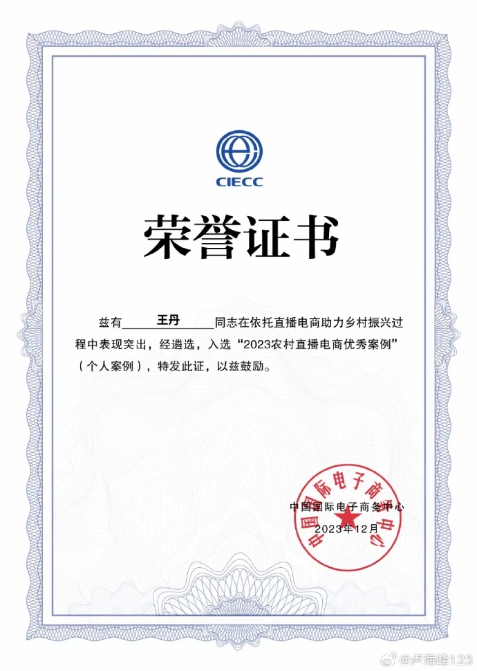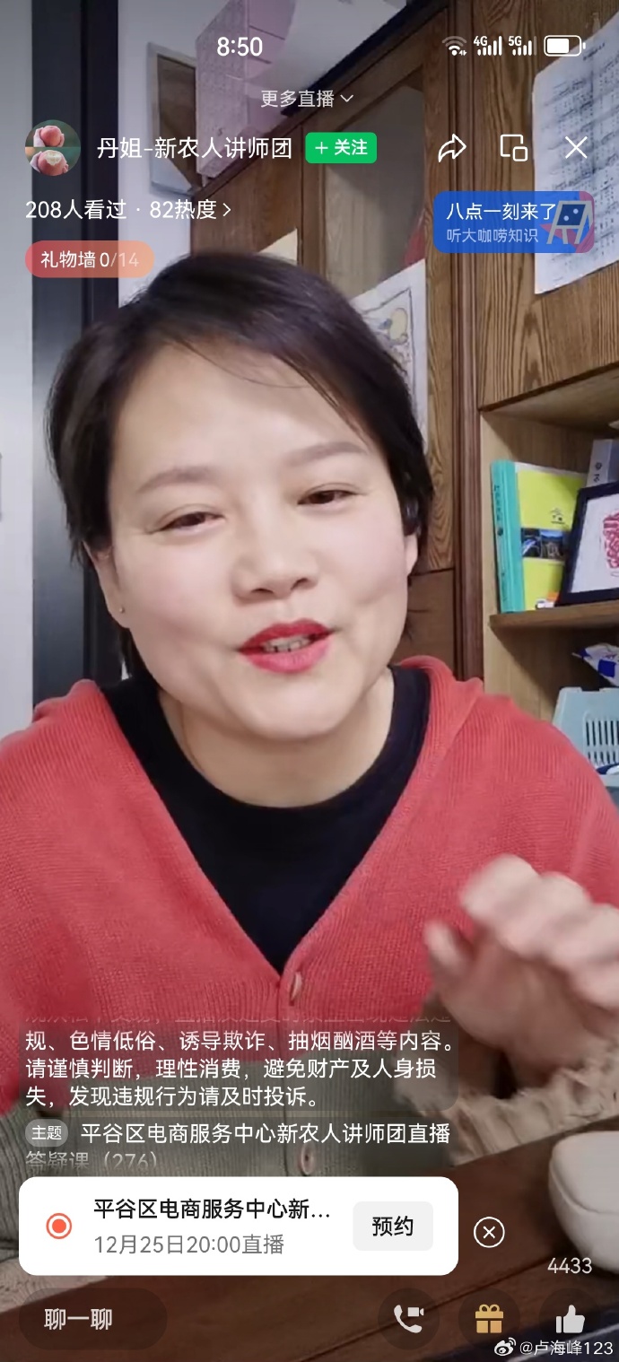平谷新农人 王丹 女,汉族,1982年4月出生,党员,本科学历,“ 平谷新农人讲师团”团长。2017年,她回到家乡培训果农用手机卖桃,将手机变成了果农的“新农具”。 用“直播电商助力乡村振兴”,平谷新农人讲师团电商培训做了7年!带动家乡平谷1万余名桃农,打造1万余新媒体账号矩阵,推广宣传我们高大尚平谷的好物好景好文化,我始终坚信,我们的桃农账号矩阵,是一支勇往直前、与时俱进的宣传推介美丽平谷的中坚力量!
